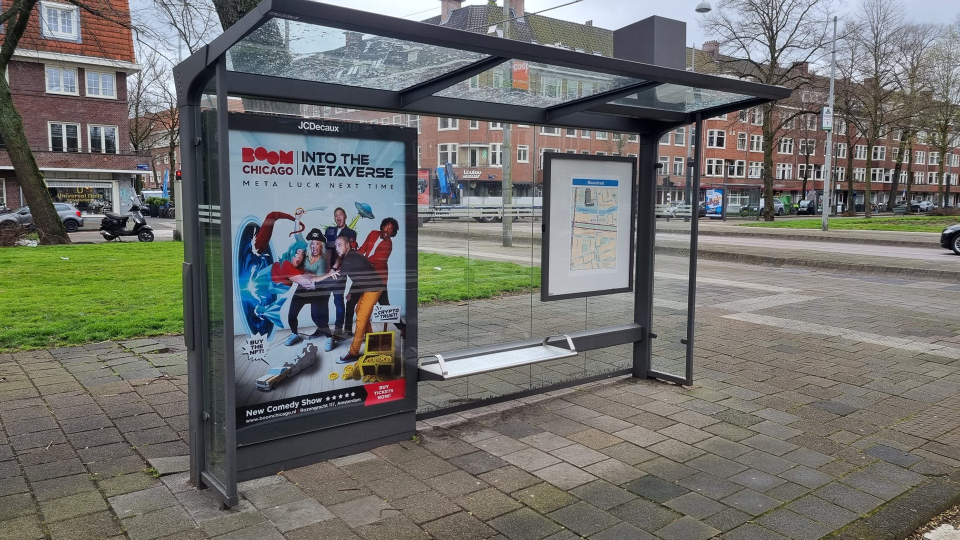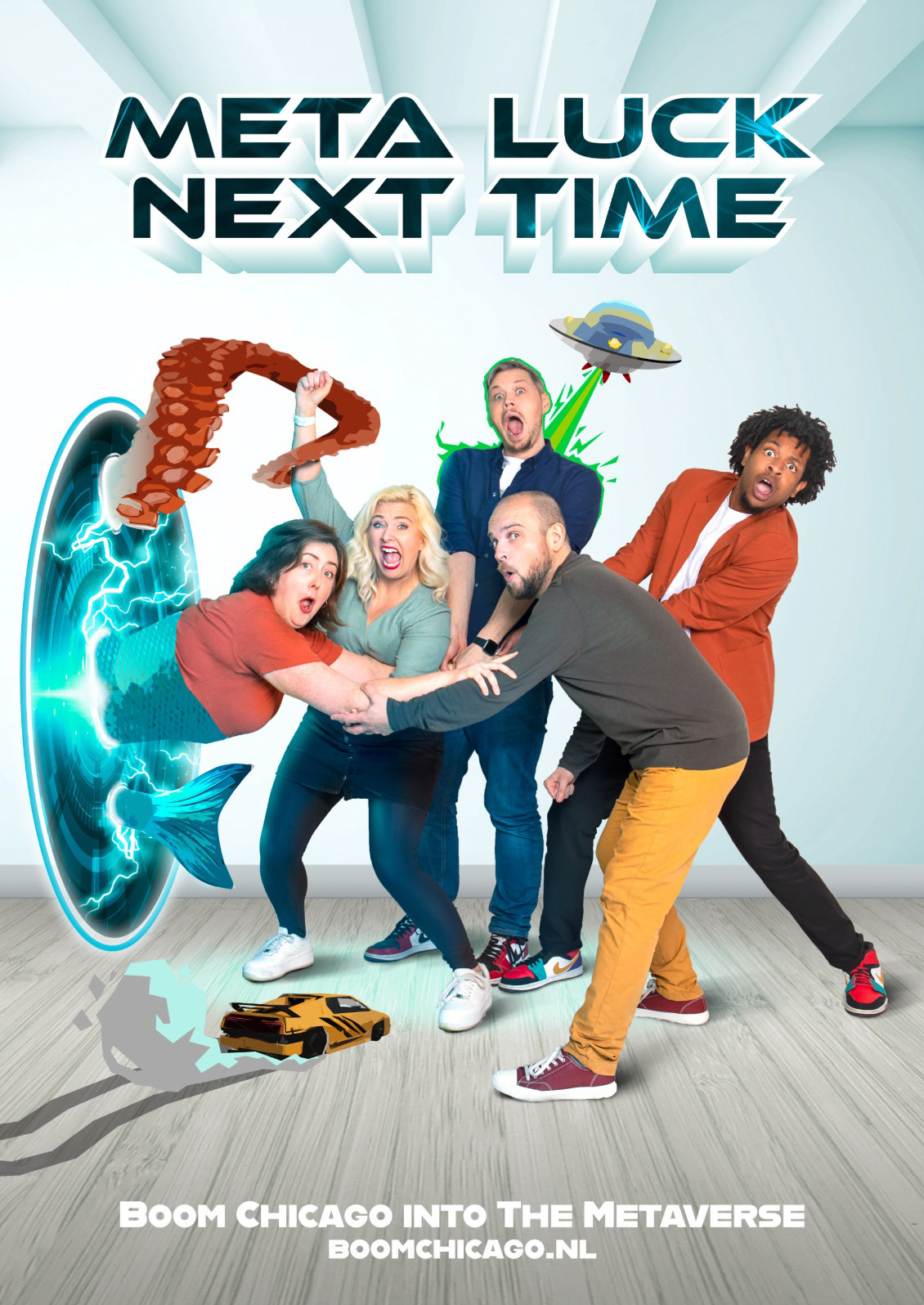 Boom Chicago, the iconic comedy theater in Amsterdam, has embarked on an exciting journey into the digital frontier with their latest show, 'Into the Metaverse.' As the laughter architects of Boom Chicago dive into the realms of NFTs, crypto, and the expansive metaverse, they approached me to craft a poster that captures the essence of this innovative and humorous exploration.